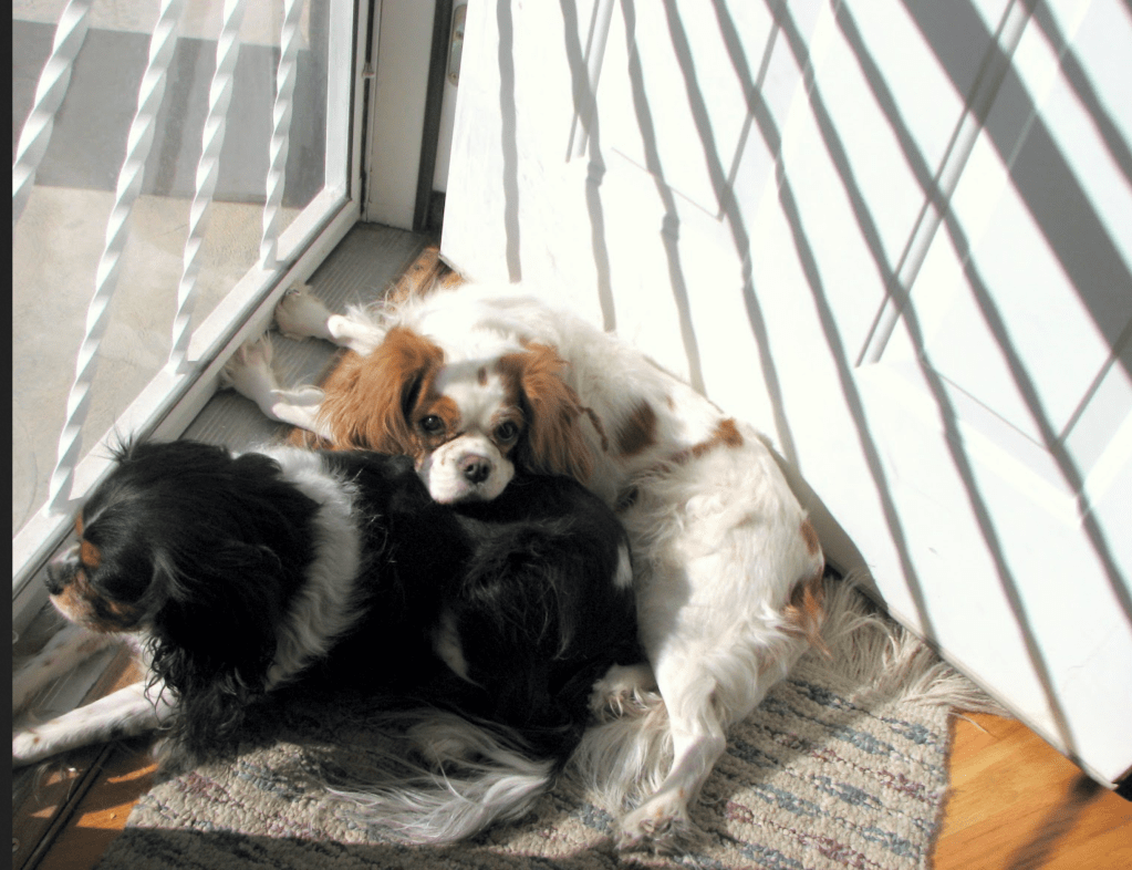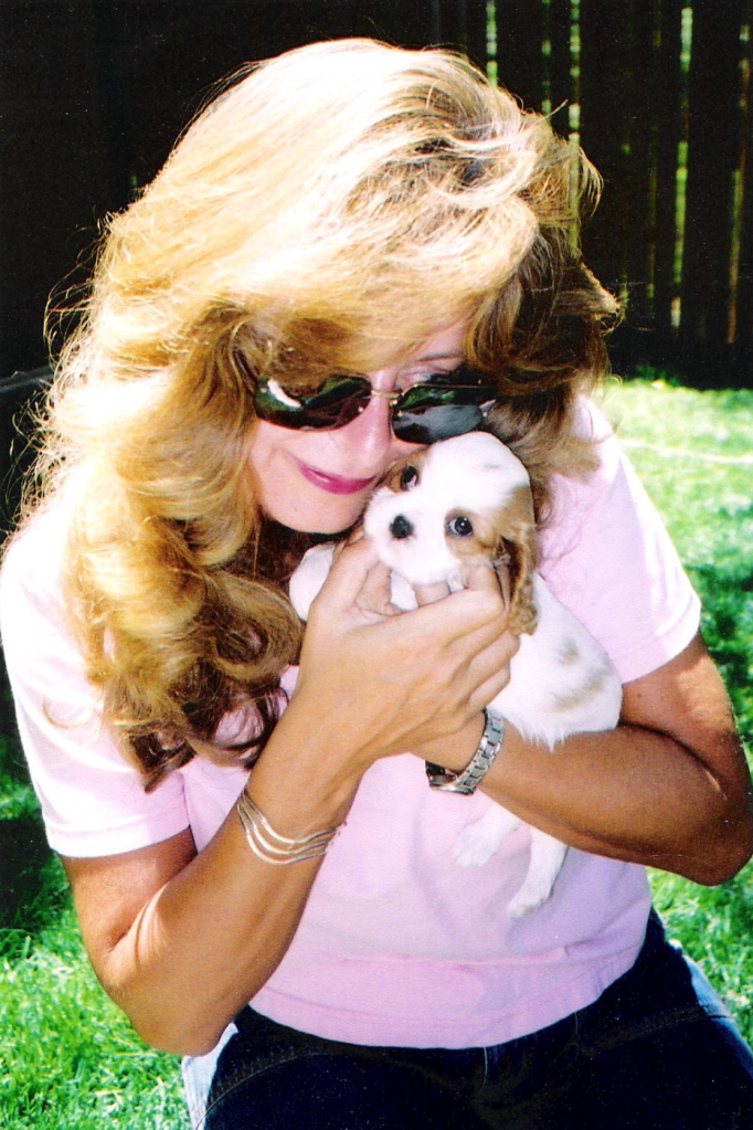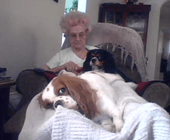 The breeder allowed me to visit her once it was safe to do so. I loved the cockeyed little spot on her head. The dots on blenheim Cavalier King Charles Spaniels are supposed to be in the center of their heads when they are lucky enough to have them. Hers wasn’t, and it gave her a very comical look. She always appeared a bit worried, and that misplaced spot kind of took the edge off. Tallie was small, but she was sturdy and she always let you know exactly what she wanted. That was evident when she was just a few weeks old and her “Grandmama” went to visit. She snuggled up on her chest, and when it was time to go back to her doggy mom, she protested with a loud puppy squeal that defied her small size. From that day forward, Tallie and “Grandmama” had a special thing going on between them. I always joked that Tallie should be my Mom’s dog because she loved her more than me.