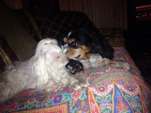 Tuscany was an odd little duck from the beginning. She did not run and play like most dogs. She did like sitting on Mom’s lap and adored my male Cavalier, Bogie. Mom enjoyed their company, especially while I was at work, and I was entertained by the updates about what the “kids” were doing when checking in. Two and a half years flew by. Sadly, we lost Jolee, the female Cavalier, to heart failure and a little more than a year later, despite a valiant fight, Bogie passed away from heart failure as well. We were all devastated, but Tuscany’s grief over the loss of her buddy was the worst. She gleefully hobbled after Bogie and slept on top of him. Suddenly he was gone. Tuscany started hiding under the couch, only the tip of her little nose visible. A veterinarian suggested Prozac to help her through it. Mom believed time and love would be the ultimate healing forces. Fast forward to our big move. My employer at the time suddenly insisted that I live in Colorado Springs. We left that little house where the echo of generations reverberated in every square inch. I bought a couch that Tuscany couldn’t hide under and hoped she’d develop a new perspective in a new house. It didn’t happen. She rarely walked and seemed perfectly content to plop on Mom’s lap and share a blueberry muffin. Now, little dogs can only eat so many muffins while owners ponder what to do next. Ultimately, Tuscany needed to see an orthopedic specialist in June of 2015. She was diagnosed with a torn CCL and both kneecaps were loose. Would surgery fix her problems? Possibly, but there was a list of complications that proved to be too risky for Mom to sign off on the procedures. Instead, we decided that Tuscany’s comfort was our top priority and put her on a regimen of pain management. Mom said many times that Tuscany was the perfect dog for her because neither of them could walk. Their shared disabilities bonded them. Mom and Tuscany chilled out in her recliner. Then came my bright idea; I decided a puppy would perk up Tuscany and introduced darling little BoJo to our pack. Dumb move. Really dumb. Tuscany hated the rambunctious little terrier. BoJo got great glee out of tormenting Tuscany and was not discouraged in the least by her very vocal rejection. Eventually, BoJo mellowed out and Tuscany kind of got used to him. Ultimately, she was content to hang out with Mom and let us know through various tonalities of yapping what she wanted and when.